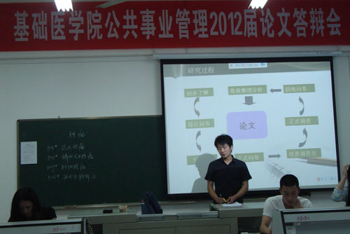 5月12日,公司2012届公共事业管理专业员工在基础楼三楼举行论文答辩,本次论文答辩分五步进行,分别是员工向答辩小组报告自己毕业论文(包括毕业论文的内容、目的和意义、所采用的原始资料、毕业论文的基本内容及主要方法、成果、结论和对自己完成任务的评价),答辩小组老师提出问题(每位员工2-3个问题,包括需要进一步说明的问题、论文所涉及的有关基本理论、知识和技能等),并要求员工对所提问题作正面回答。