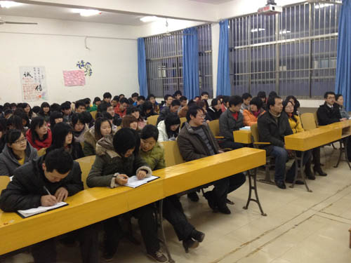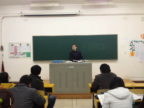 随后,活动小组成员来到7-501,再次观摩了由11级临床本科一班班主任王孝才主持的班会点评。王老师针对班干部反映出的主要问题,结合每位同学上学期的总结,重点强调了老员工心理危机干预的重要性。他希望大家能够互相关爱,共同创造一方健康纯净的心灵净土。在讨论阶段,王老师和大家分享了一篇来自北大董事长周其凤与湖南大学员工交流的文字——《关于优秀员工的衡量标准》。他指出,大学里有很多可以利用的资源,除了图书馆和实验室之外,任课教师就是最便捷的资源。老员工只有“培养、锻炼、造就自己”,才能最终收获“做人的态度,想问题的思路,解释问题的方法”。王老师由此延伸到了目标与实践的探讨,分别在事业、学业、人际、文体四个方面提出了独到的培养方法。他说:“每个同学都必须设立清醒的目标,这个目标就是志向。有了目标就不怕路途遥远,而缺乏目标的人就像大海中没有罗盘,无法正确驶向彼岸。”王老师还强调了实践的重要性,没有身体力行,目标都是空中楼阁,纸上谈兵。