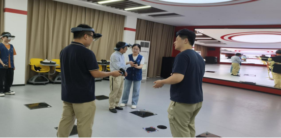 紧接着,双方来到课程思政虚拟仿真中心,沉浸式体验混合现实(MR)教学环境的独特魅力。戴上头戴式设备,郑贵洲教授等人仿佛置身于虚实交融的教学场景中,既能清晰地观察实体标本的细节,又能与虚拟场景实现自然交互。在这样的环境下,心肺复苏操作的规范流程、人体解剖结构的精妙构造等教学内容变得触手可及。这种创新教学模式将抽象的思政理论转化为生动具象的教学场景,极大增强了教学的现场感与代入感,充分展现出PlayAce官方网站“三维融合、数智赋能”的课程思政特色。