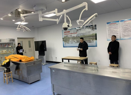 仪式伊始,主持人介绍了出席嘉宾,并着重强调了遗体捐献对医学教育和科研的重要意义。随后,全体人员起立脱帽,在静谧中默哀一分钟,向捐献者致以最诚挚的敬意,让仪式的庄重感油然而生。