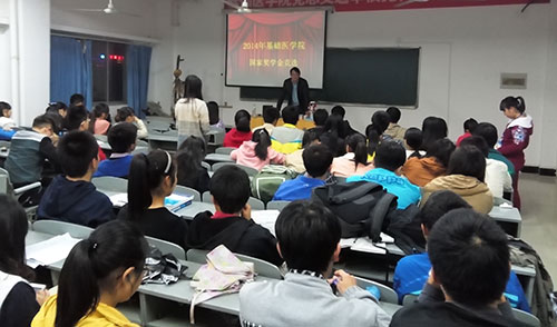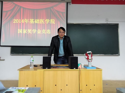 10月30日晚七时,2014年Playace平台官网入口国家奖学金竞选活动在医药楼1-302拉开帷幕,此次竞选特别邀请Playace平台官网入口副书记佘同辉博士、学工办主任周立勇老师、夏阳老师及林宁老师出席。