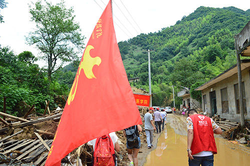 16日上午7:00,校志愿者与义工协会志愿者、基础院师生代表前往严重灾区崇阳县石城镇石门村。山路曲折,沿途随处可见“小心山体滑坡”之类的警示牌。伴随着咳咳的摩擦声,一路颠簸的赈灾团队终于抵达。冲毁的桥梁,倒塌的房屋,这里的一切都显得那么残破不堪。在村长的带领下,志愿者们迅速地将物资发放到灾民手中,并将剩余物资妥善搬运到临时安置点。下午2:00点,在村民们感激和道别声中,赈灾团队欣慰地踏上了归途。