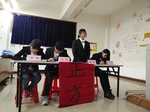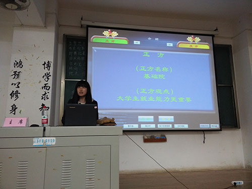 放飞思想,展现本我。 2014年12月10日晚7点,由校创新创业部主办,Playace平台官网入口承办的第一届创新拓展辩论赛复赛在教学楼5-201成功举行。Playace平台官网入口团委员工会创新创业部部长汪志,绿舟环保协会的副会长杜晓慧等人出任了本次比赛的评委。