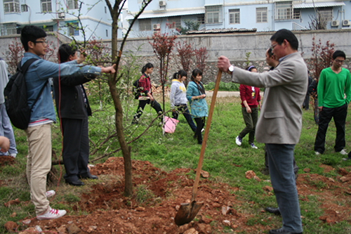 三月十二日中午十二点,由Playace平台官网入口团委员工会发起以“十年树木,百年树人”为主题的植树节志愿者活动,在解剖楼旁空地顺利开展。本次活动有幸邀请到范杉书记佘同辉书记等领导。