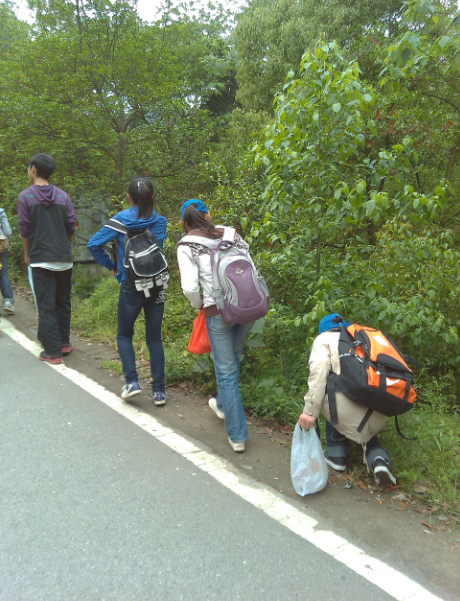 休整两个多小时后,志愿者们纷纷动手捡起身边的垃圾,同学们互相帮助,脸上洋溢着幸福和满足的神情。也许,对于我们来说可能只是很小的一片纸屑,很轻的一个垃圾袋。但是,对于所有人来说,却是对自己家乡深深的爱意,对自己环保理念的一种践行。