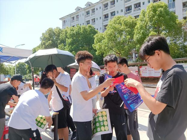 紧接着大家来到了东区竹风苑“党史竞答”站点。党史竞答活动旨在巩固同学们平时的党史学习教育成果。现场工作人员准备了丰富的党史题目,同学们也纷纷摩拳擦掌,在党史答题中感悟红色精神。