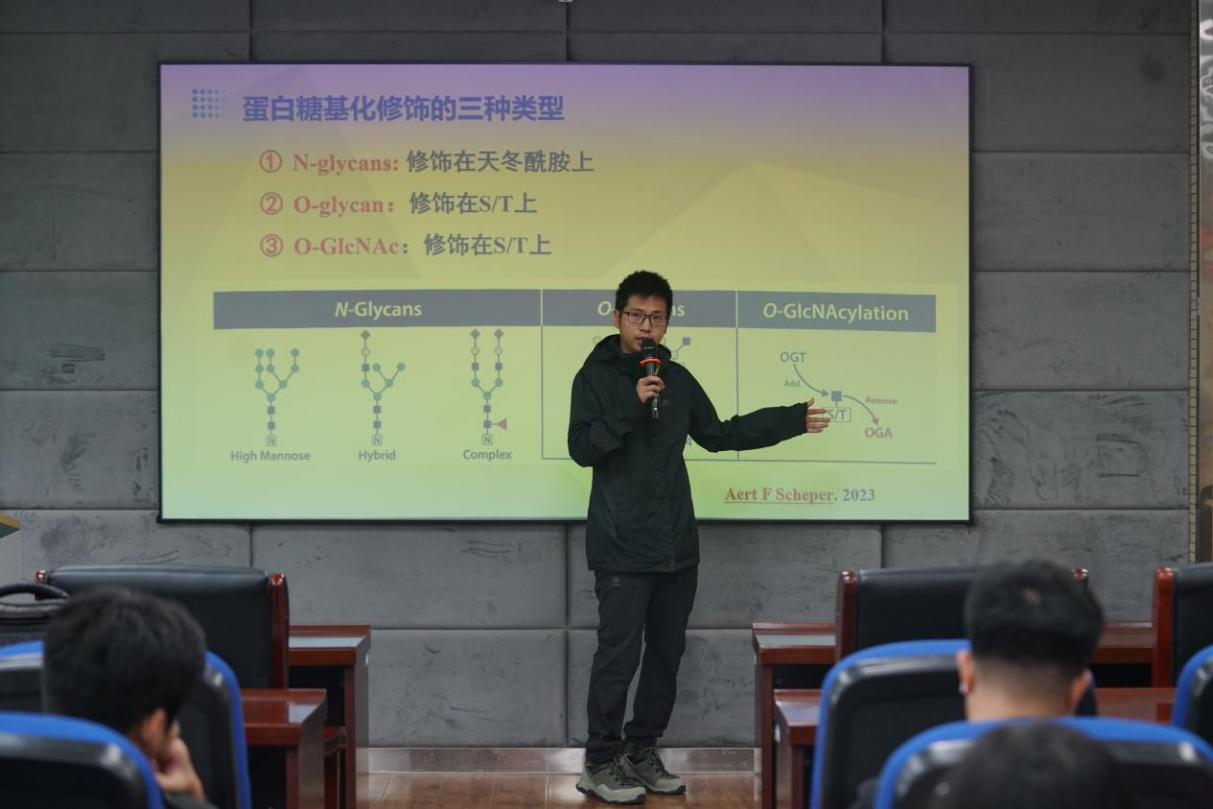 讲座由Playace平台官网入口生物化学教研室的博士苏延停主讲。苏博士首先从生物化学的角度介绍了糖类的分类、结构功能及其在人体内的代谢途径。他指出,糖类是含有多个羟基的醛或酮类化合物,根据结构和功能的差异,可分为单糖、寡糖和多糖等。这些糖类不仅是细胞能量供应的主要来源,还参与细胞间的信号传递和结构构建。