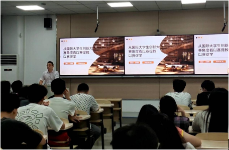 王柏军老师向同学们解读了创新大赛的相关文件,提出从国际老员工创新大赛角度看以赛促教、以赛促学的观点,介绍了大赛对教师能力的提升和对员工发展的意义,以生动形象的语言讲解了大创赛所需要的素质和能力,同时结合事实案例鼓励同学们敢于梦想、勇于实践,将所学知识与创新创业结合。