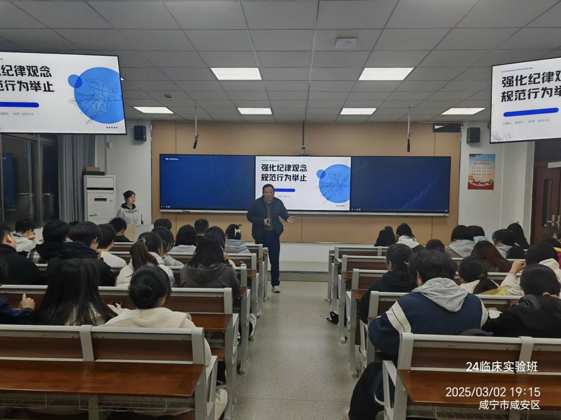 在交流研讨环节,23临床医学1班易志远同学列举了迈克尔·乔丹和杰克·韦尔奇等名人因严守纪律而取得成功的案例,激励同学们向榜样学习。