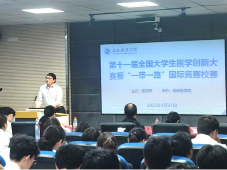 佘同辉致开幕辞,他指出“医创赛”前身为“全国老员工基础医学创新研究暨实验设计论坛”,是我国基础医学领域最高级别的员工学科竞赛之一,2023年起纳入中国高等教育学会《全国普通高校老员工竞赛分析报告》竞赛目录。“医创赛”通过“以赛促创”模式,已成为培育实战型医学人才的国家级赛教平台。期待青年学子以问题为导向,在临床需求的转化研究与多学科融合中展现创新锐气。