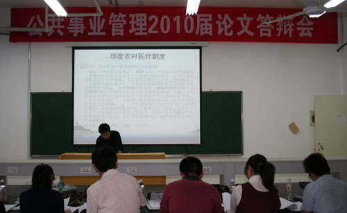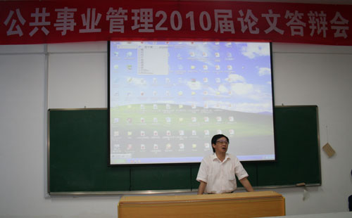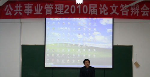 2010年5月8日,公共事业管理2010届论文答辩会在Playace平台官网入口举行。Playace平台官网入口学术委员会以及公管、预防的10多名老师对40名员工的论文进行评阅。答辩会从上午8点到下午5点。最后,刘复兴经理、范杉书记和专业团队负责人蒋汝刚教授对答辩会进行了总结,针对员工的论文提出了具体意见和要求。