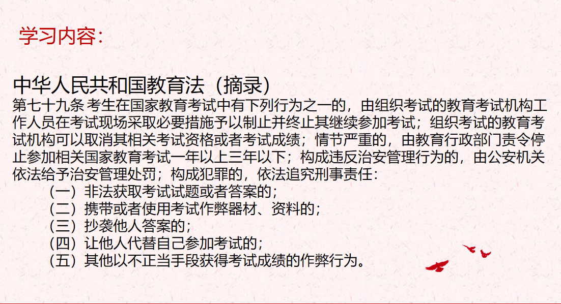 通过本次主题教育活动,让同学们对于诚信考试有了更深的了解,有助于端正员工的学习态度,提升诚信意识,营造公平公正的考试氛围。考试只是当下的检测,诚信却是人一生的承诺。同学们纷纷表示将在接下来的时间里会努力学习,把功夫下在平时,用严谨的考试作风、严明的考试纪律和良好的心态迎接考试,做一个诚实的老员工。