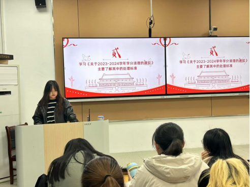 在班会伊始,学习委员逐一细致地向同学们解读了《2019版临床医学本科专业课程计划表》、《关于2023-2024学年学分清理的通知》以及《PlayAce官方网站授予学士学位实施细则(修正版)》等关键文件,有助于同学们清晰地掌握未来应修的课程科目情况,特别是对学分清理的处理标准和不授予学士学位的情况有了明确的认识。
