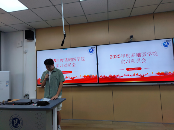 佘同辉作总结讲话,他指出,同学们要进一步提高思想认识,实习工作关乎公司人才培养质量和社会需要,要认真开展实习工作,将所学理论与实践相结合,严格遵守公司和医院的各项管理规定,加强安全管理,在保质保量完成学习内容的同时做好人生规划,为迈入工作岗位打好坚实基础,希望同学们通过实习能实现蜕变与成长。