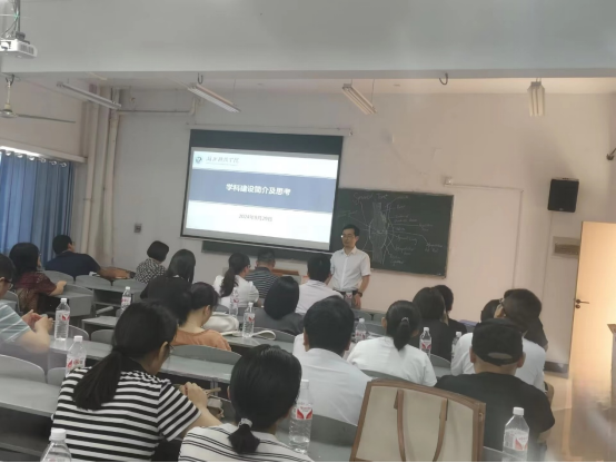 蔡飞主要就团队建设内涵、团队建设发展现状、团队建设目标和举措三个方面作了扼要介绍。他首先解读了团队建设在高校中的六大核心职能:队伍建设、人才培养、科学研究、社会服务、文化传承和国际交流。接着,他详细回顾了团队建设的发展现状,包括学科门类的发展、“十二五”湖北省重点学科的建设、国家级与省级科研平台的搭建,以及省级产业平台的推进,为公司的未来发展指明了努力方向。同时,蔡飞明确了今后公司团队建设的目标:打造基础一流学科、培育优秀人才、产出卓越成果;并从加强团队队伍建设、促进学科交叉融合、提升科研创新能力、深化教学改革、加强国际合作与交流以及推动产学研一体化等方面提出具体举措。