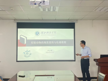 接着单士刚教授结合自己的科研管理需要,以“实验动物的规范使用与伦理准则”为题,从一下七个方面:一、实验动物的重要;二、国际与国内法规;三、实验动物伦理原则;四、实验动物伦理原则(3R原则);五、规范操作流程;六、常用动物安乐死的方法;七、总结与展望,对实验动物的使用进行了详细的讲解,通过报告,大家意识到平时在使用实验动物的过程中存在着那些违反动物伦理的一些行为,大家纷纷表示,一定严格按照标准,规范使用实验动物,让实验动物有个体面的归宿。
