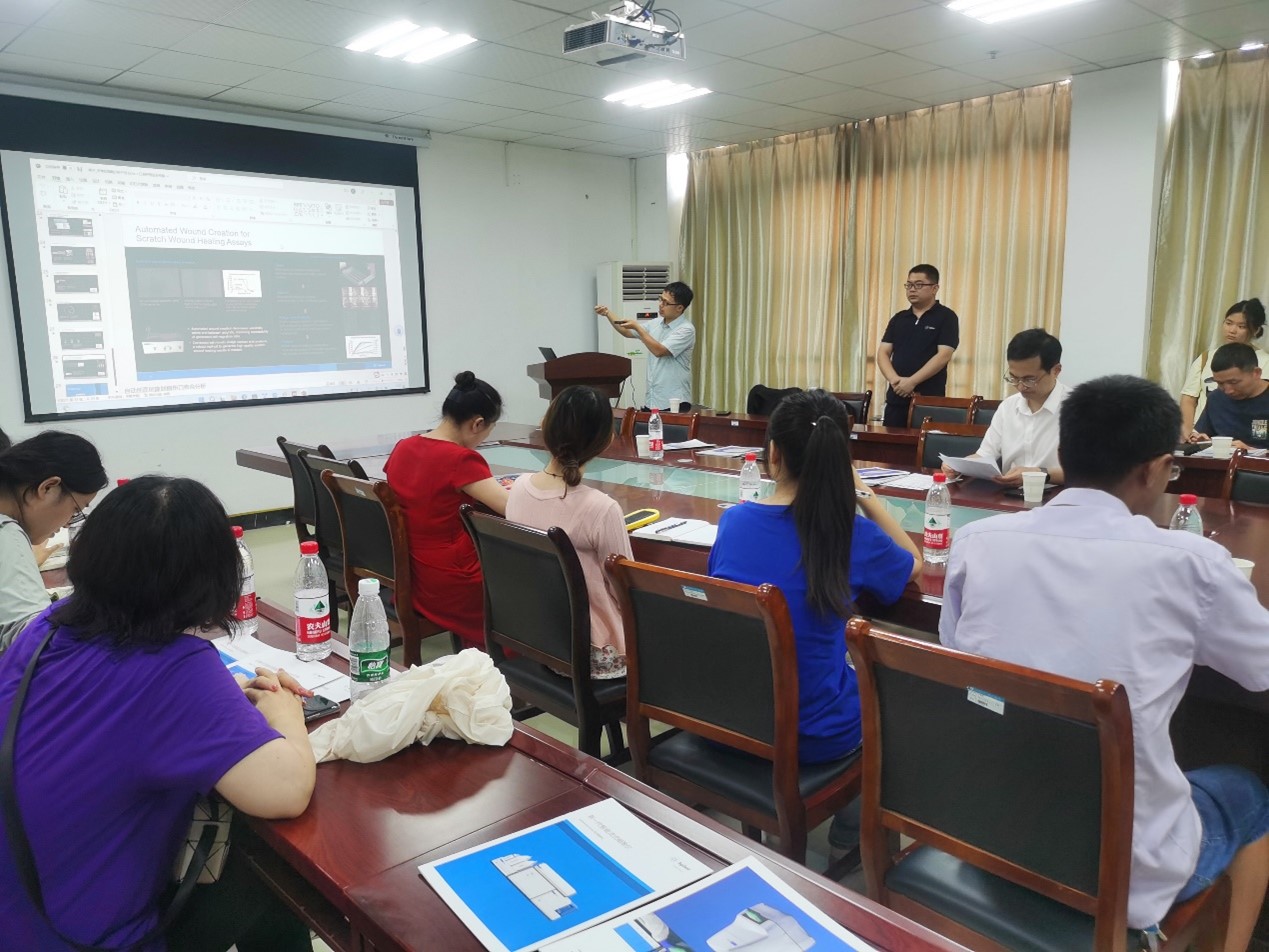 王昆仑简要介绍了安捷伦细胞分析部产品发展历程,重点分享了安捷伦实时无标记细胞分析仪/流式细胞仪的原理及应用技术案例。李章磊分享了Seahorse细胞能量代谢技术和Cytation高通量活细胞检测工作站应用技术,这些技术有助于深入探讨细胞功能深层次的生理生化机制,已广泛应用于肿瘤学、药理学、毒理学等领域,为疾病机理研究提供多维度应用方案。与会师生对相关产品和技术产生了浓厚的兴趣,表示希望今后能有机会就相关产品的应用进行更深入的探讨。