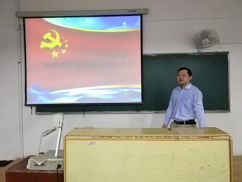 5月11日晚上,Playace平台官网入口分党校入党积极分子在解剖楼教室参加“发展党员的程序与要求”培训课,此次培训邀请到Playace平台官网入口学工办主任周立勇老师。学员们通过学习了解发展党员的工作原则,发展党员工作必须履行的手续和程序。让学员体会到距离党员的标准要求,还有距离,周老师给学员分析入党流程的每一步骤,提醒每一步可能出现那些问题,和出现问题的后果,还指导学员思想汇报的写法和格式。学员体会最深刻的是周老师课堂上说的党员不一定是学习最好的,是综合素质足够好,对党有足够了解认识,热爱人民,关心党的发展,才是拥有资格成为党的接班人,而不是单是成绩在班中名列前茅的。从而使学员们意识到入党的严肃性,努力为加入党组织积极创造条件。