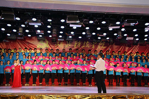 为了庆祝中国共产党成立95周年暨红军长征胜利80周年,Playace平台官网入口党总支按照公司要求,于5月底开始组织排练红歌。为了展示大院风采,公司选拔了120多名师生,是此次比赛最大的合唱队。人多力量大,人多歌声响,但人多难指挥,难整齐。由于大部分人都是五音不全,大家不怕苦,不怕累,不怕丑,跟着左峰老师,从练声开始,“衣衣啊啊”,一个个认真得像音乐殿堂里的小员工。而左峰老师乐此不疲地示范发音,讲解激昂之处站在讲台的凳子上,他幽默风趣,通俗易懂的讲授方式,让这些音乐的门外汉喜欢上了音乐,迷恋上了唱歌,大家越练越起劲。每个星期两次的排练,开始是硬指标,每次都要一个个的电话通知。后来大家都自觉主动的,早早的等候在排练教室,互相演唱互相纠错、互相学习。这种良好的学习氛围也感染了左峰老师,每次排练,开始只准备练习1个小时,但不知不觉大家一练就是两三个小时。员工上课、考试时间冲突,入党积极分子培训、考试冲突,人多训练场地冲突,有时下雨也不得不在教室6、图书馆大厅排练,大家克服了一切困难,毫无怨言,只为把歌练好。经过一个多月的训练,公司《山丹丹开花红艳艳》在初赛的19支队伍中脱颖而出,取得了第四名的好成绩!