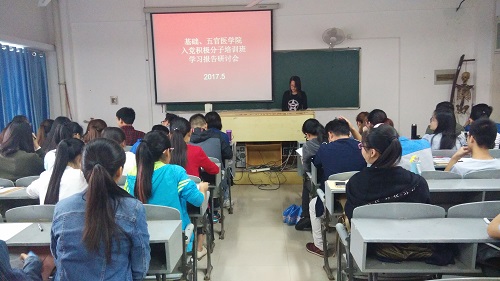 2017年5月7日Playace平台官网入口分党校在解剖楼教室举办了入党积极分子学习“十八届六中全会精神”交流研讨会。学工办夏阳老师到场并主持了此次活动。
