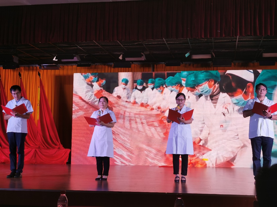 全体党员重温入党誓词拉开整场活动序幕。第一篇章—旗帜,以纪录片和情景剧《红船》相结合,再现了近代以后中华民族饱经磨难,无数仁人志士前赴后继寻找救国救民真理,直到1921年,中国共产党诞生,中国革命的面貌焕然一新;情景舞蹈《八女投江》生动展现在抗日战争的沙场上,中国共产党团结带领中国人民淬火成钢的伟大历程。第二篇章—信念,情景剧《我要去》讲述1965年为响应毛主席“应该把医疗卫生工作的重点放到农村去”的最高指示,中共湖北省委在多次召开会议,湖北医公司党委经过充分讨论后决定,在咸宁办分院。以王太西老教授专访和情景舞蹈《平凡天使》相结合讴歌了一群公司建设和发展的奠基人与开拓者,放弃城市里舒适的生活,来到山区,把青春年华和毕生精力奉献在农村基层,奉献给医学教育事业,谱写了湖医咸宁分院自力更生、艰苦奋斗的创业史,用生命的烛光点亮鄂南人民健康之路。通过整理历史资料,老照片收集系统回顾了公司由湖医咸宁分院到PlayAce官方网站的发展史,从没有一间教室,没有一张课桌,除了部分仪器和药品是从湖北医公司带来外,实验室、图书室、办公室及员工生活用具均一无所有到拥有两个校区占地1861亩,1.8万余名员工的省属本科高校、转型发展试点高校、教育部本科教学工作水平评估“优秀”高校;第三篇章—守护,情景剧《老师,我长大了》、朗诵《铮铮誓言》讲述新冠肺炎疫情发生后一场举国动员上下同心的全民战役。第四篇章—追梦,通过知名员工寄语视频与音乐舞蹈《万疆》结合,体现湖科医学赓续红色血脉,医心向党,逐梦新时代。演出结束,全场起立,共同高唱《没有共产党就没有新中国》热烈掌声经久不息。