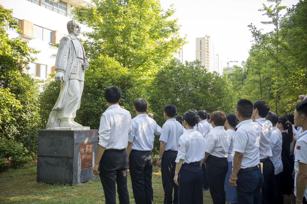 全体党员在白求恩雕像前重温医员工誓词,“健康所系,性命相托”的誓词铿锵有力、响彻云霄......
