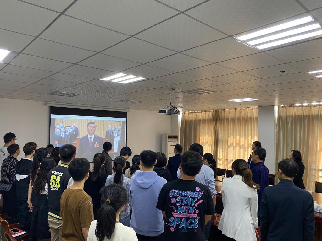 2022年10月16日上午10点,Playace平台官网入口党委组织师生党员集中观看二十大开幕式电视直播。