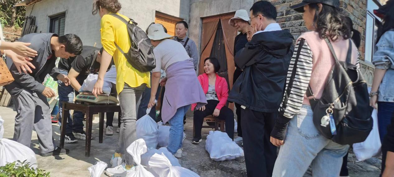 慈口乡五甲湾有一位近80岁留守老人,老伴儿也年事已高,儿子儿媳均外出务工。老人家山上柑橘成熟了,却无劳力采摘,如果采摘不及时,满山的果子可能会烂在树上。了解到这户果农缺少劳动力,在程梦琳书记和蔡飞经理的带领下,我们一行来到老人家后山的柑橘园里,黄灿灿的橘子沉甸甸地缀满枝头,好不惹眼。经过近两小时的奋战,大家共采摘柑橘近千斤,为方便老人,我们安排李成武老师帮忙称秤,最后统一用现金支付,让闻迅而来的邻乡老农喜笑颜开,满是感激之情。