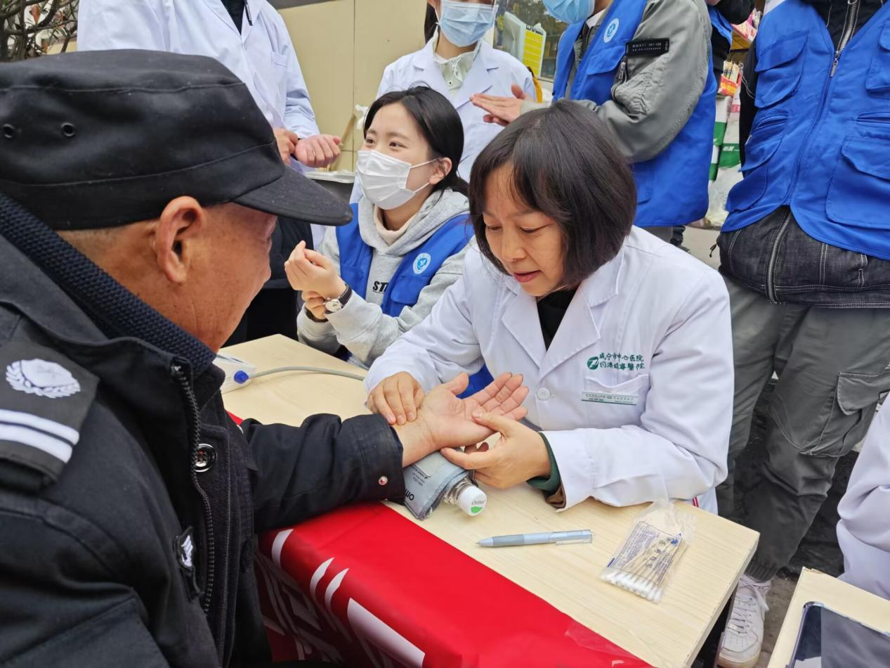 宣教团队对患有高血压、糖尿病、高血脂、颈椎病、过敏性鼻炎等常见病者,耐心询问他们的日常生活习惯及身体状况,量血压,从日常护理、良好习惯养成、饮食卫生、加强锻炼、家庭日常用药储备等方面进行了指导。小区居民纷纷表示:“医疗志愿服务进社区,真是方便了老百姓,家门口就能看病,暖心又贴心。”门卫大爷说:“你们只指导我们用药,不是为了卖药赚我们钱,一定是真心实意的。”收场时,多位小区居民热切期望宣教队下次再来。员工党员詹雨停说:“通过这次活动,我深刻地认识到了医员工的责任与使命。帮助别人的重要前提是学业要精,后面我将更加努力学习专业知识。”