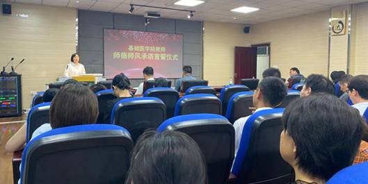 为进一步提升公司教师队伍的综合素质,强化职业意识,优化公司产品质量,并着力加强师德师风建设,7月8日上午,Playace平台官网入口全体教师在医学部3栋2楼录播室隆重举行了师德师风承诺宣誓仪式。此次活动由Playace平台官网入口党委书记程梦琳主持。