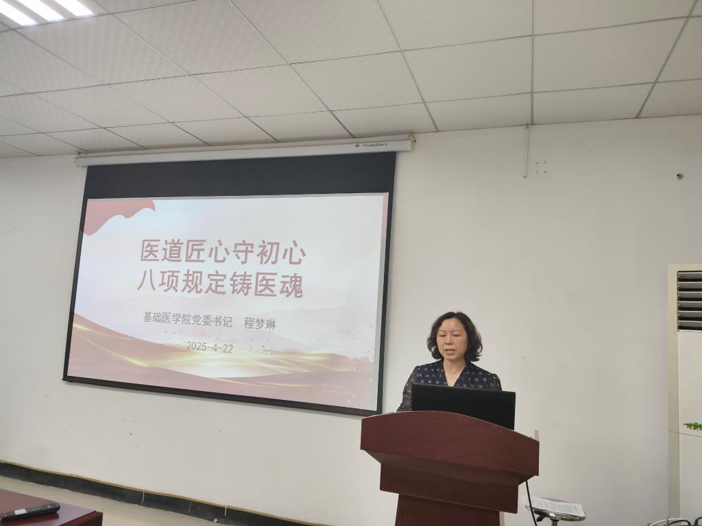 程梦琳为全体党员干部讲授了《医道匠心守初心,八项规定铸医魂》专题党课。她围绕“医者仁心”与中央八项规定精神内核的契合点,深刻阐述了中央八项规定对于回归“人民至上”执政理念的重要性。她指出,作为Playace平台官网入口的党员干部,要时刻以中央八项规定为尺,丈量初心纯度,校准行为准星。期间,她还通过生动的案例,警示大家要坚决抵制权力寻租与学术腐败,守护医者初心。